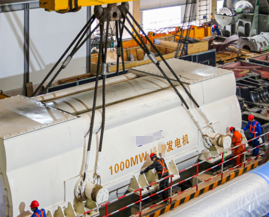 發(fā)電機(jī)定子的吊裝工作可絕非易事,其龐大的體積和驚人的重量,讓這一過程宛如一場(chǎng)高難度的“空中芭蕾”。好在有鋼絲繩索具挺身而出,成為吊裝作業(yè)的得力助手。